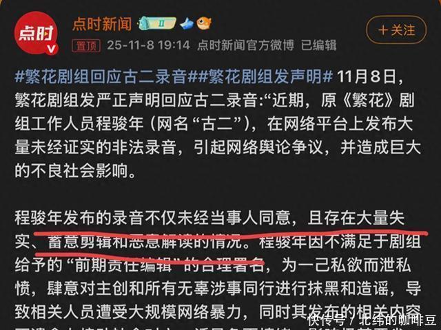 然而,这篇声明非但没有成为灭火器,反而如同浇上了一勺热油。它措辞严厉,指控“古二”(实名程骏年)发布的录音是“非法侵权”,内容“大量失实、蓄意剪辑、恶意解读”,并直指其“长期滞留境外,逃避国内司法调查”。 这份声明,本想将古二钉在“泄私愤、抹黑同行”的耻辱柱上,却意外点燃了公众的逆反情绪。网友们用“傲慢”一词刷屏,一场本该是行业内部的署名纠纷,彻底演变成了一场关乎权力、尊严、与行业黑幕的公共审判。 今天,我们就来深度复盘,这场《繁花》“录音门”,究竟撕开了多少不为人知的B面? “小人物”的绝地反击,与他手中的“惊天巨雷” 要理解这场风暴,我们必须先认识风暴的中心——“古二”,程骏年。